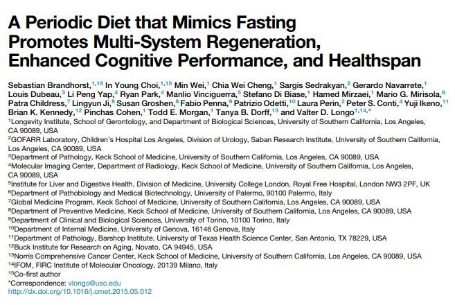 Brandhorst 등은 단식 모방 다이어트(FMD) 프로토콜을 개발한다.